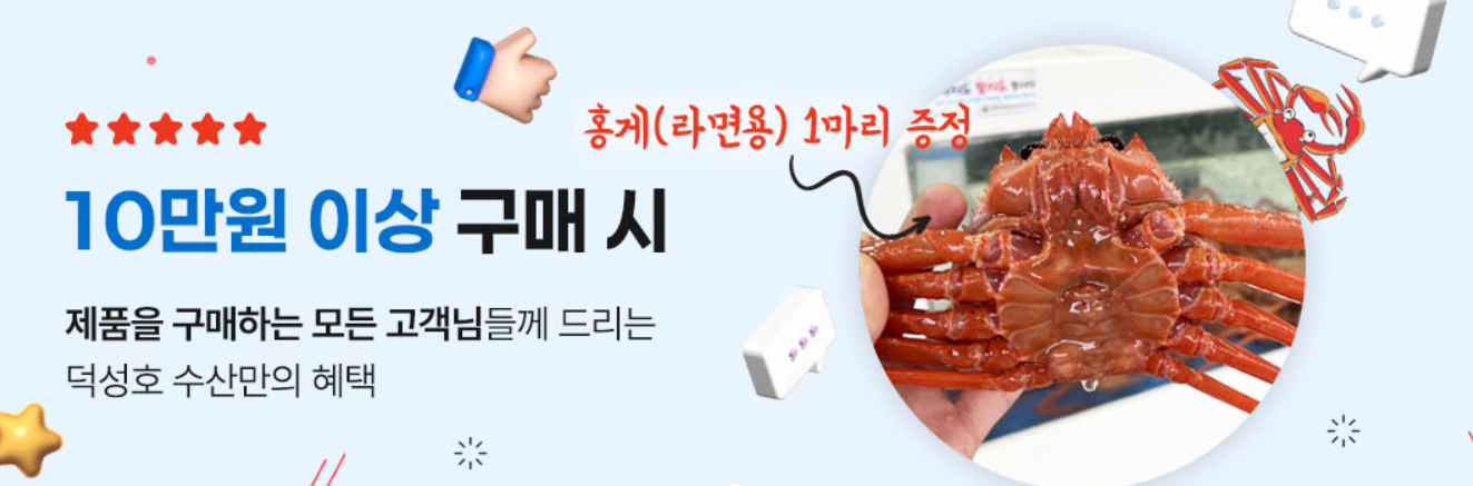 - 대게 / 홍게(제철) – 겨울 시즌 인기 품목