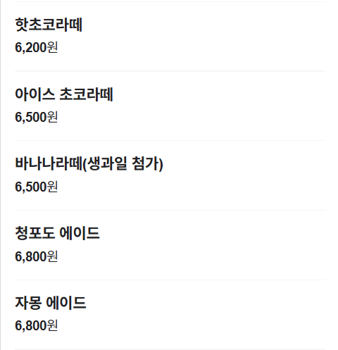 - 커피 & 음료류: 아메리카노, 라떼, 계절 음료 (예: 옥수수 라떼 / 옥수수 우유 / 달콤한 옥수수 스무디 등)
