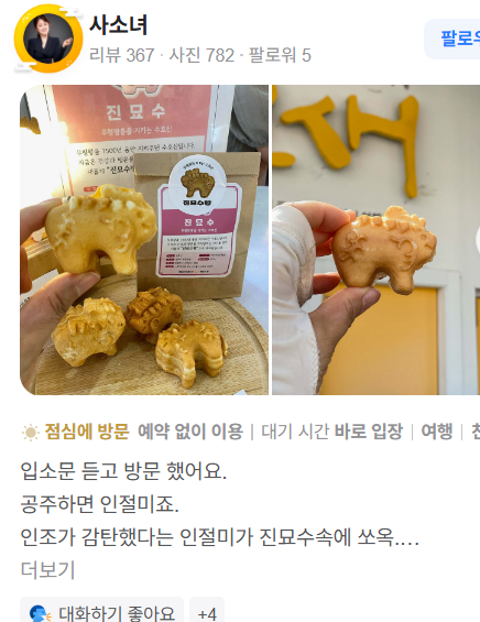 배 고프다면 잡채만두, 알밤모찌, 닭강정 등 간식으로 시작하고 그다음 식사 또는 떡류 구입. - 현금 준비