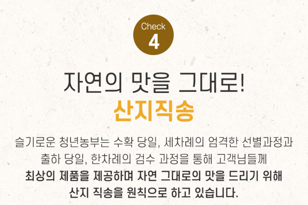 위탁 판매 업체를 이용하지 않고 생산부터 유통까지 모든 과정을 직접 관리하여 높은 수준의 품질을 가진 배를 고객님들에게 제공하고 있습니다.