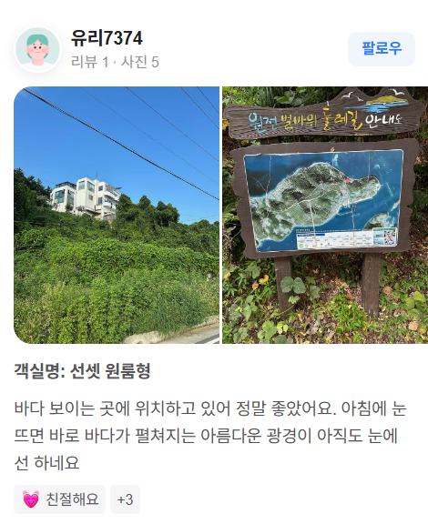 - “탁 트인 거실과 시원한 바다전망이 감탄을 자아냈다” – 오션뷰가 훌륭했으며, 분위기가 매우 인상적이라는 리뷰가 많습니다.