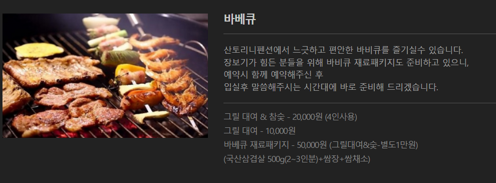 각 객실이나 마당에서 바비큐 시설을 이용할 수 있어 가족이나 친구들과 함께 즐거운 시간을 보내기 좋습니다. 비나 바람을 막아주는 방풍 시스템도 갖춰져 있어 편의성이 높습니다.