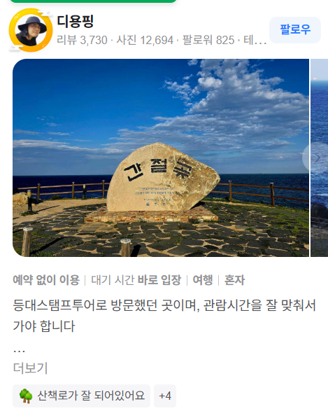 • 많은 방문객들이 “일출 장관이 압도적이다”, “파도 소리와 바다 경치, 조용한 산책로가 마음을 편안하게 한다”는 평