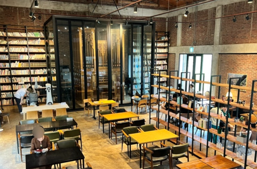 • 목재 트러스 구조, 낡은 벽돌의 질감과 현대적으로 리모델링된 부분이 조화되어 “오래된 것과 새로운 것의 공존”이라는 미학적 특색을 지닙니다.