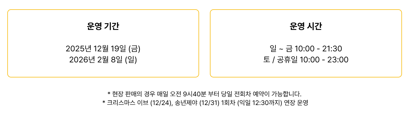 특별 연장: 12월 31일(수) 24:00(자정)까지🌙🎉 - 360 포토존, 푸드존: 가족 단위 방문객을 위한 다양한 참여 이벤트가 준비돼 있습니다.