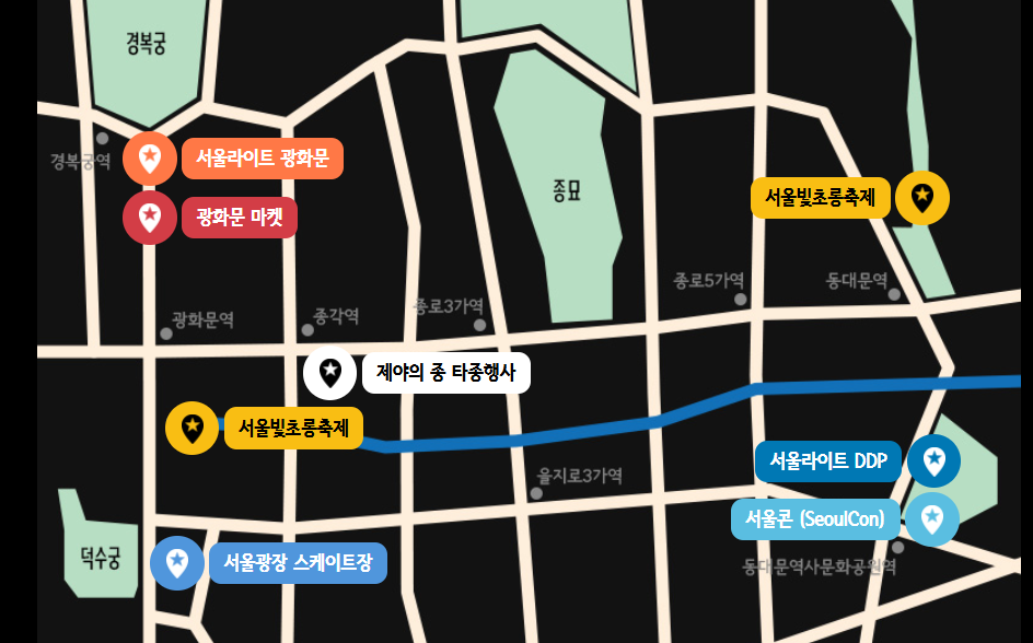 서울윈터페스타 2025는 아래 서울 도심 주요 장소에서 진행됩니다: