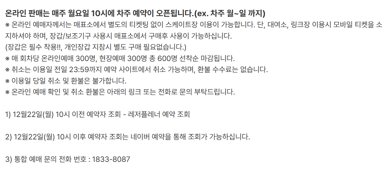 | 12월 19일–2월 8일 | Seoul Plaza 아이스 스케이트장 | 서울광장 |