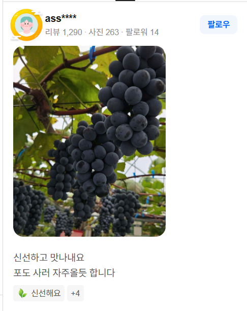 | - 포도의 품질과 당도가 뛰어나다는 평이 많습니다. 특히 샤인 머스캣 및 일부 희귀 품종의 맛과 외형이 기대 이상이었다는 의견. - 체험 농장의 시설이 쾌적하고, 스마트팜 설비 덕분에 더위나 습도 등 환경적 불편이 적다는 후기가 있음. - 아이들과 함께 가기 좋다는 점, 가족체험 코스로 추천됨. |