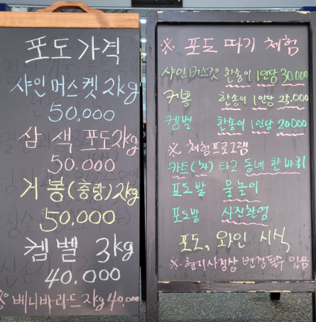- 포도 따기 체험: 방문객이 직접 포도를 수확해 보고, 즉석에서 맛보거나 포장 가능함.