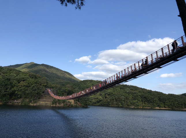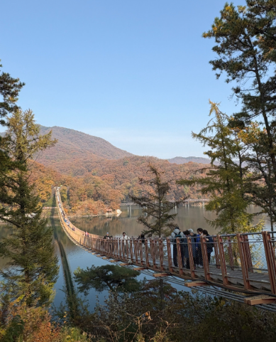 - 출렁다리를 건너면서 호수 위를 걷는 듯한 체험이 가능하며, 특히 가을철 잔잔한 호수 위에 단풍이 반사되는 풍경이 인상적입니다.