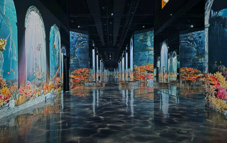 평균 10m에 달하는 높은 층고와 바닥, 넓은 벽면과 거울에 인생의 아름다운 순간을 주제로 한 '시공간'과 '자연', '명화' 등의 초현실적인 프로젝션 맵핑 기술을 입혀 관객을 감싸는 듯한 압도적 경험을 선사합니다.