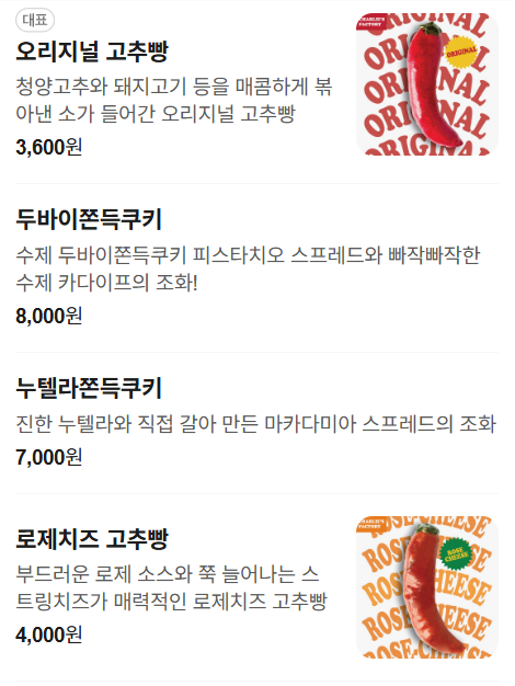 - 고추를 활용한 시즌 한정 베이커리
