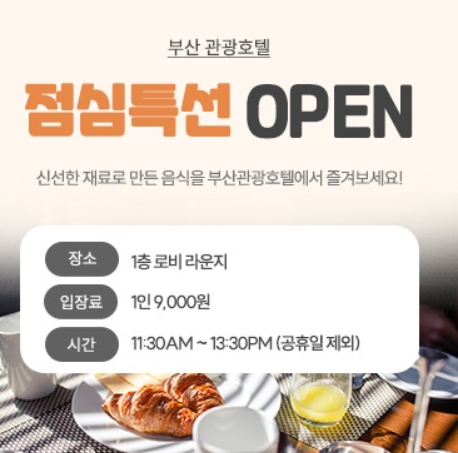 부산 관광호텔 점심뷔페 1인 9,000원 예약 바로가기