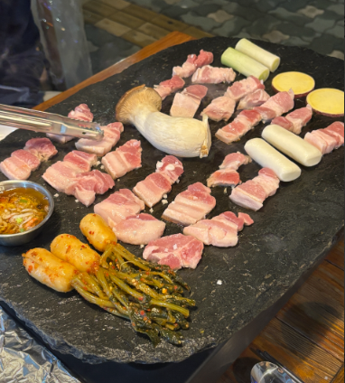 - “겉은 바삭하게 잘 구워지고, 파김치나 곁들여서 먹으니 고기 느끼함이 덜해요.”
