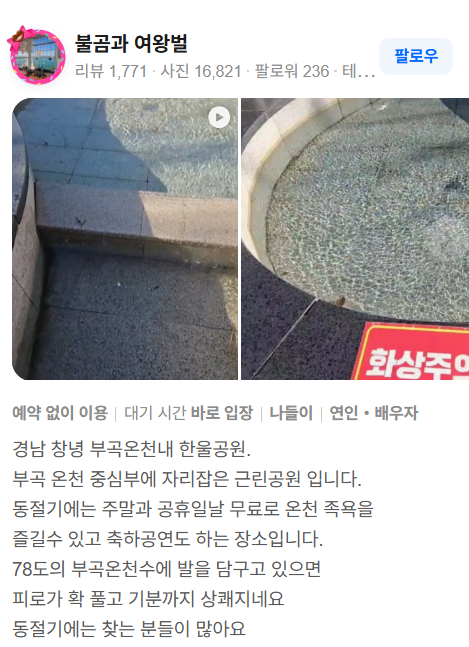 - “족욕장이 무료라서 여행 만족도가 높았다.”