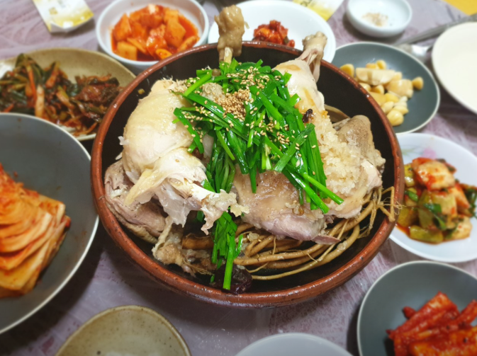 저녁(식사시간 18:00~18:30 사이) : 한방닭백숙(집에서 직접 키운 토종닭입니다)