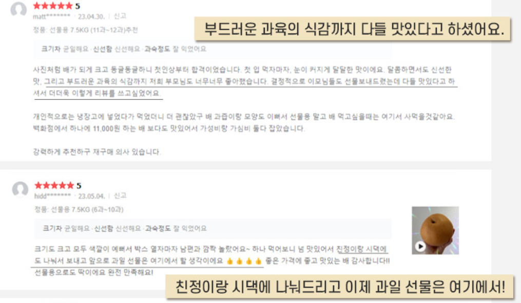 - “달콤하고 아삭아삭해서 아이들 간식으로 최고예요.”