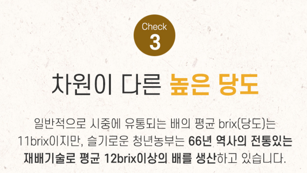 위탁 판매 업체를 이용하지 않고 생산부터 유통까지 모든 과정을 직접 관리하여 높은 수준의 품질을 가진 배를 고객님들에게 제공하고 있습니다.