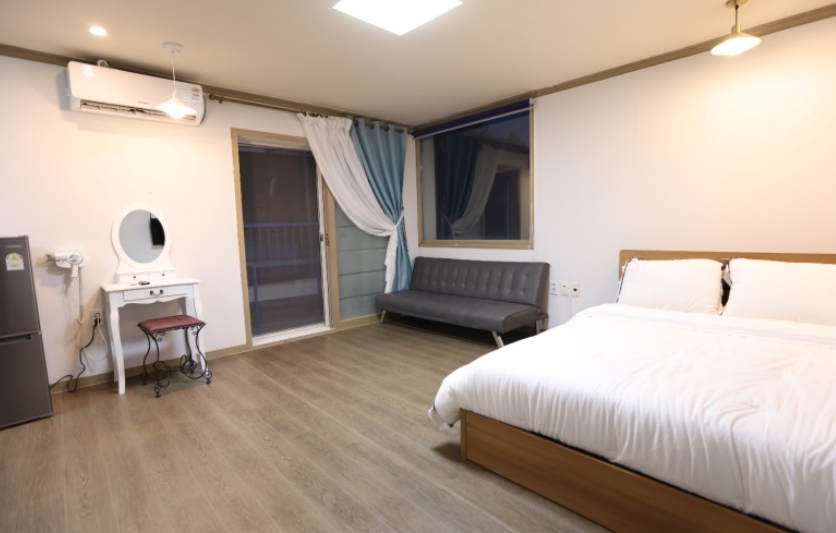 창원 구산면 언덕에 위치한 산토리니펜션은 방마다 넓은 베란다와 오션뷰가 특징이며, 객실마다 분위기 있는 테라스 공간이 마련되어 있어 힐링에 최적입니다. 특히 핑크미니벨룸의 월풀 욕조는 여행의 품격을 높여줍니다. - 바비큐 파티 가능