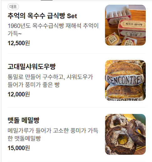 - 멧돌메밀빵: 메밀 특유의 고소한 풍미가 살아있고 부담스럽지 않은 맛.