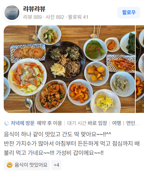 리뷰를 보면 알 수 있듯이, 산마을민박식당은 단순히 숙박이 아니라 사람 냄새 나는 따뜻한 경험을 제공합니다.