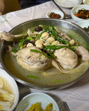 저녁(식사시간 18:00~18:30 사이) : 한방닭백숙(집에서 직접 키운 토종닭입니다)
